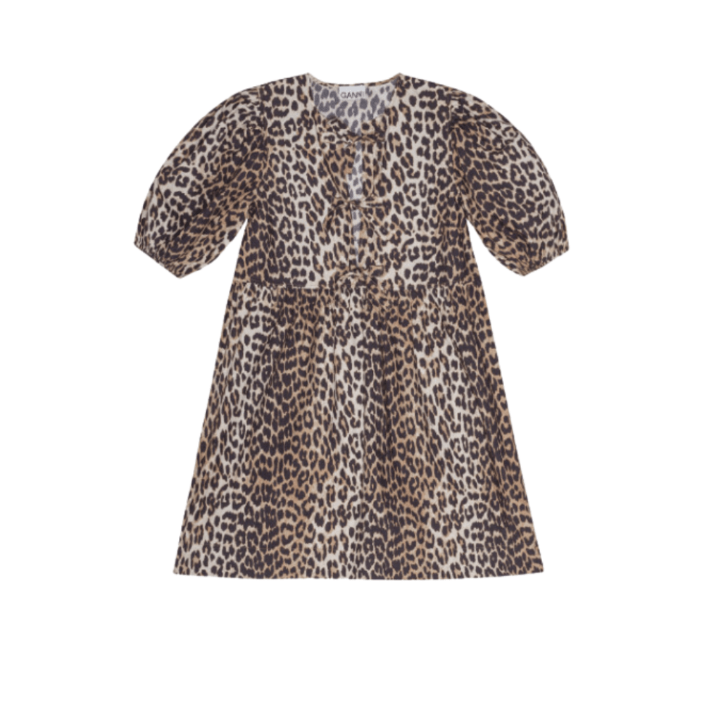 Leopard Print Cotton Tie String Mini Dress by Ganni