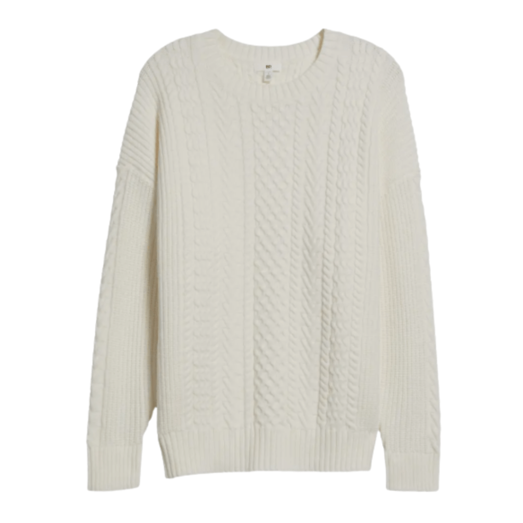 Can one live in New England and not own a cable knit sweater? It really isn’t possible. And with this lightweight oversize cotton version you will be comfy AND warm on those cooler spring/summer days/nights. This too is available in three colors. I prefer the ivory as a great go with anything neutral.